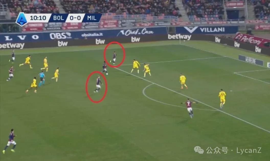 而在比赛初期,主场作战的博洛尼亚执行高位压迫并非一无是处,但抢下来的机会都被低效的单打挥霍了。